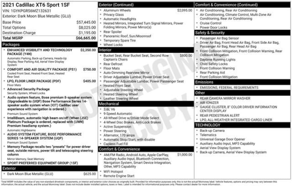 !!NEW ARRIVAL!! MORE PICTURES COMING.This vehicle was just added to our inventory and is in the process of being inspected and reconditioned; the optioned listed might not be complete and are subject to change. Please call or click the link on this page to request more information. Donât miss out contact us today!! Clean CARFAX.Awards:* 2021 IIHS Top Safety Pick+Fox Chevrolet has been delivering on a promise since 1967. Come in and check out what the Fox Advantage truly is. Same Vehicle, Same Color, Same Options- Better Value. We do the legwork for you! We use state-of-the-art software to make sure our vehicles are priced below the market. This ensures you a great value, a stress-free and fun buying experience. As part of the Fox family, all of our customers receive a Deductible Reimbursement program that could save you thousands, just ask us how! AWD 2021 Cadillac XT6 Sport 3.6L V6 DI VVT