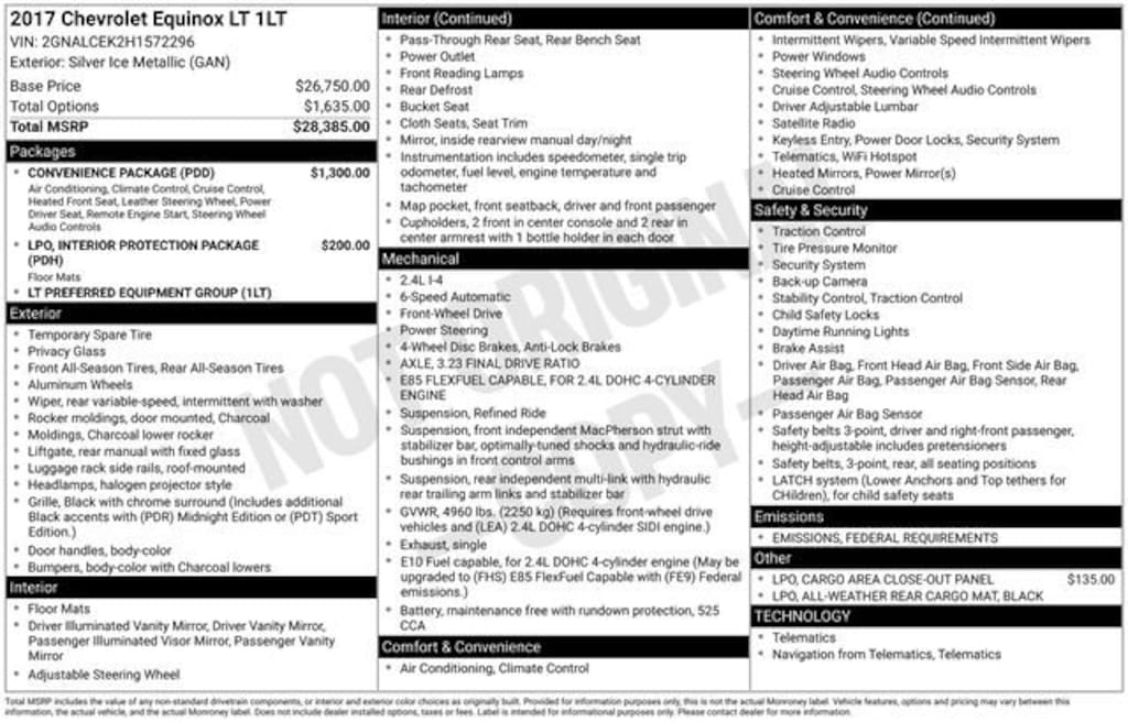 !!NEW ARRIVAL!! MORE PICTURES COMING.This vehicle was just added to our inventory and is in the process of being inspected and reconditioned; the optioned listed might not be complete and are subject to change. Please call or click the link on this page to request more information. Donât miss out contact us today!! Clean CARFAX. Odometer is 10625 miles below market average!21/31 City/Highway MPGAwards:* JD Power Dependability Study * 2017 KBB.com 10 Most Awarded BrandsFox Chevrolet has been delivering on a promise since 1967. Come in and check out what the Fox Advantage truly is. Same Vehicle, Same Color, Same Options- Better Value. We do the legwork for you! We use state-of-the-art software to make sure our vehicles are priced below the market. This ensures you a great value, a stress-free and fun buying experience. As part of the Fox family, all of our customers receive a Deductible Reimbursement program that could save you thousands, just ask us how! FWD 2017 Chevrolet Equinox LT 2.4L 4-Cylinder SIDI DOHC VVT