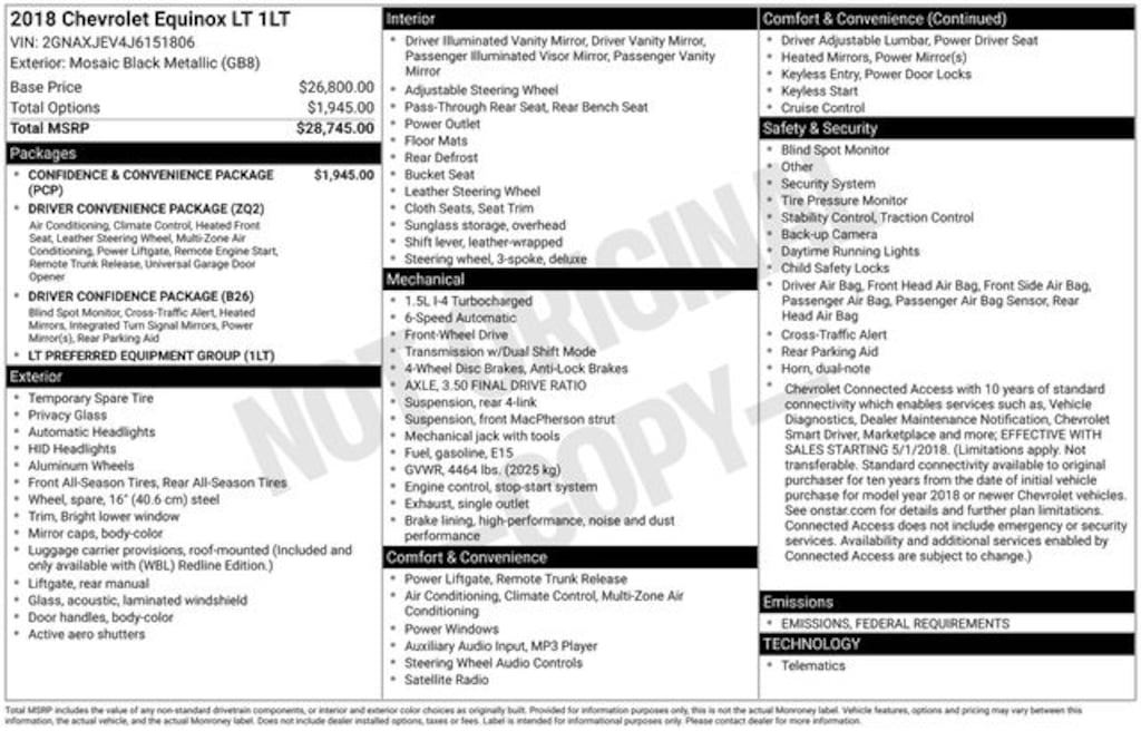 Fox Chevrolet has been delivering on a promise since 1967. Come in and check out what the Fox Advantage truly is. Same Vehicle, Same Color, Same Options- Better Value. We do the legwork for you! We use state-of-the-art software to make sure our vehicles are priced below the market. This ensures you a great value, a stress-free and fun buying experience. As part of the Fox family, all of our customers receive a Deductible Reimbursement program that could save you thousands, just ask us how! FWD 2018 Chevrolet Equinox LT 1.5L DOHC