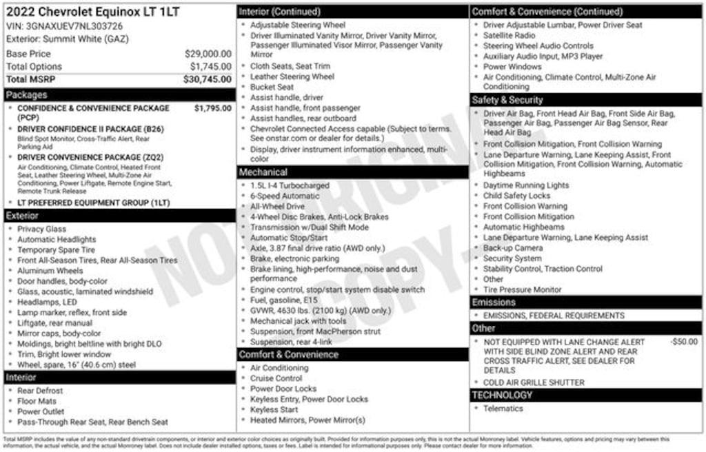 Fox Chevrolet has been delivering on a promise since 1967. Come in and check out what the Fox Advantage truly is. Same Vehicle, Same Color, Same Options- Better Value. We do the legwork for you! We use state-of-the-art software to make sure our vehicles are priced below the market. This ensures you a great value, a stress-free and fun buying experience. As part of the Fox family, all of our customers receive a Deductible Reimbursement program that could save you thousands, just ask us how! AWD 2022 Chevrolet Equinox LT 1.5L DOHC