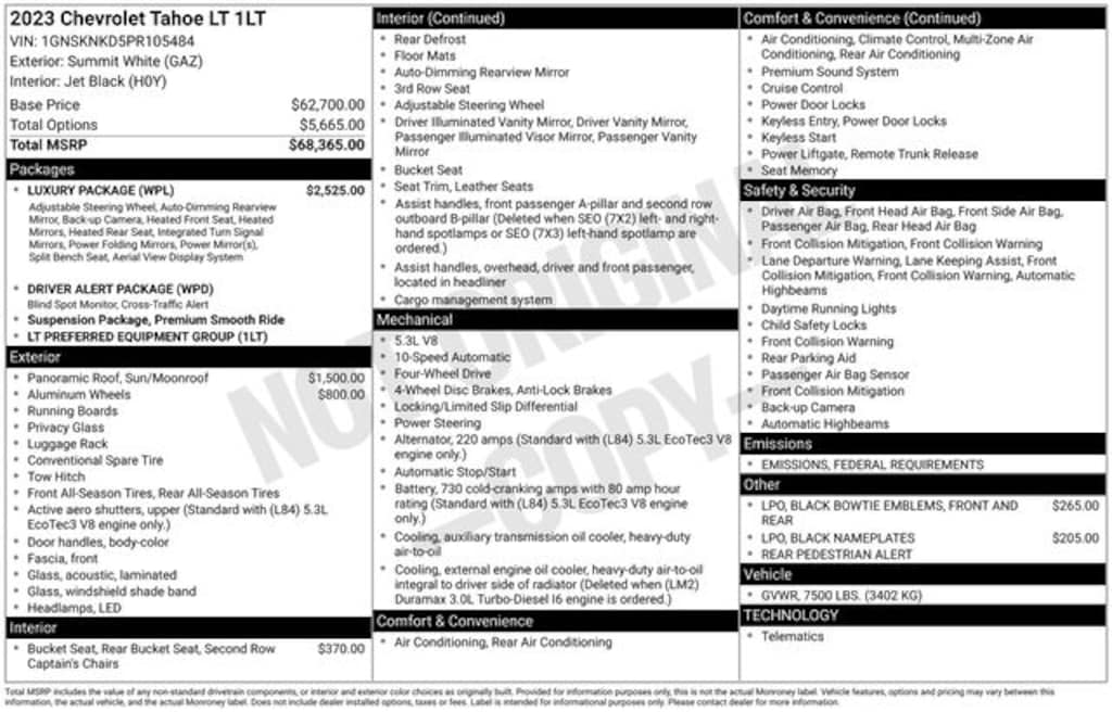 Fox Chevrolet has been delivering on a promise since 1967. Come in and check out what the Fox Advantage truly is. Same Vehicle, Same Color, Same Options- Better Value. We do the legwork for you! We use state-of-the-art software to make sure our vehicles are priced below the market. This ensures you a great value, a stress-free and fun buying experience. As part of the Fox family, all of our customers receive a Deductible Reimbursement program that could save you thousands, just ask us how! 4WD 2023 Chevrolet Tahoe LT EcoTec3 5.3L V8