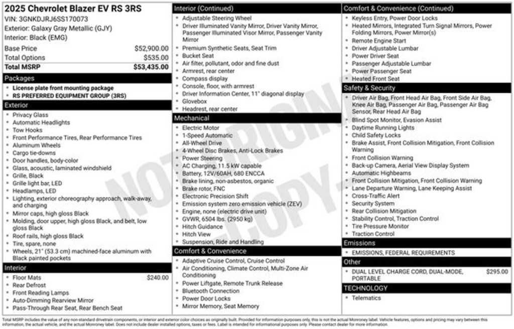 Fox Chevrolet has been delivering on a promise since 1967. Come in and check out what the Fox Advantage truly is. Same Vehicle, Same Color, Same Options- Better Value. We do the legwork for you! We use state-of-the-art software to make sure our vehicles are priced below the market. This ensures you a great value, a stress-free and fun buying experience. As part of the Fox family, all of our customers receive a Deductible Reimbursement program that could save you thousands, just ask us how! AWD 2025 Chevrolet Blazer EV RS Electric Motor