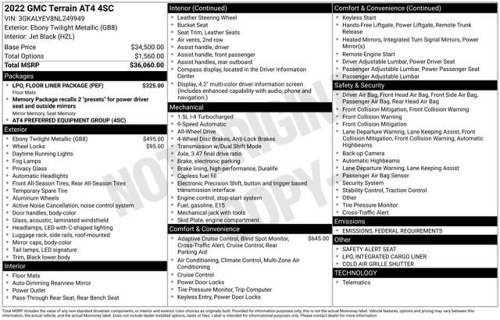 Fox Chevrolet has been delivering on a promise since 1967. Come in and check out what the Fox Advantage truly is. Same Vehicle, Same Color, Same Options- Better Value. We do the legwork for you! We use state-of-the-art software to make sure our vehicles are priced below the market. This ensures you a great value, a stress-free and fun buying experience. As part of the Fox family, all of our customers receive a Deductible Reimbursement program that could save you thousands, just ask us how! AWD 2022 GMC Terrain AT4 1.5L DOHC