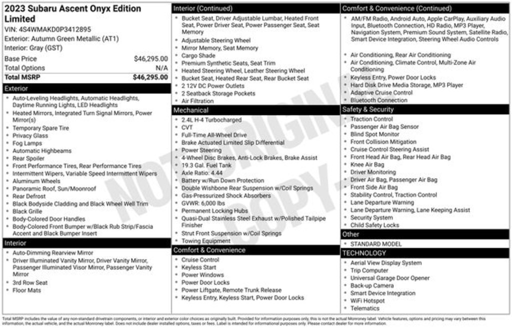 Fox Chevrolet has been delivering on a promise since 1967. Come in and check out what the Fox Advantage truly is. Same Vehicle, Same Color, Same Options- Better Value. We do the legwork for you! We use state-of-the-art software to make sure our vehicles are priced below the market. This ensures you a great value, a stress-free and fun buying experience. As part of the Fox family, all of our customers receive a Deductible Reimbursement program that could save you thousands, just ask us how! AWD 2023 Subaru Ascent Onyx Edition 2.4L 4-Cylinder DOHC 16V