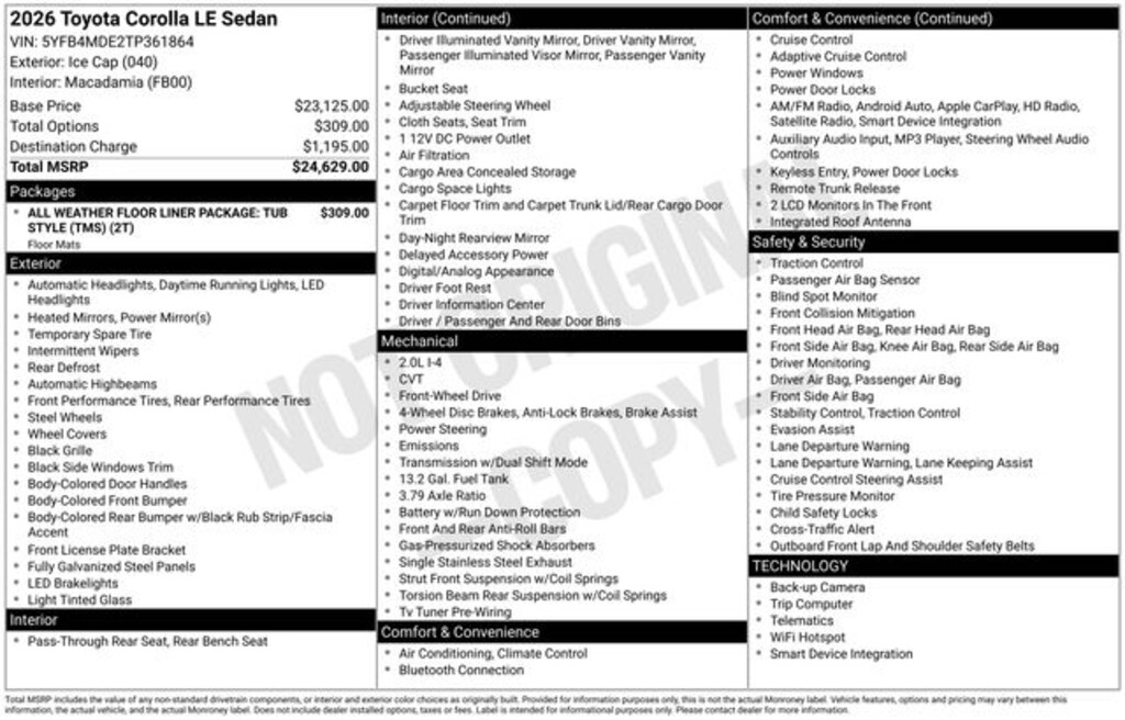 Ice Cap 2026 Toyota Corolla CVT FWD LE 4D Sedan